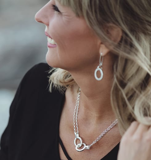 The jewelry pairs well with the other pieces in the “CLASSIC” collection.