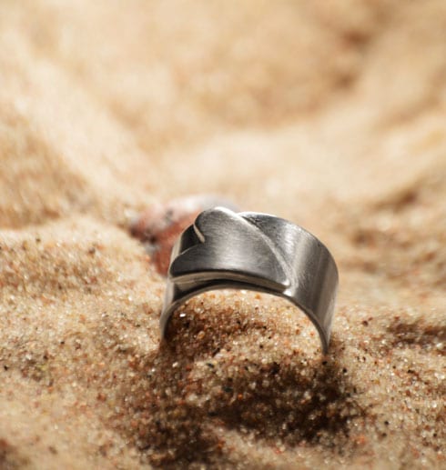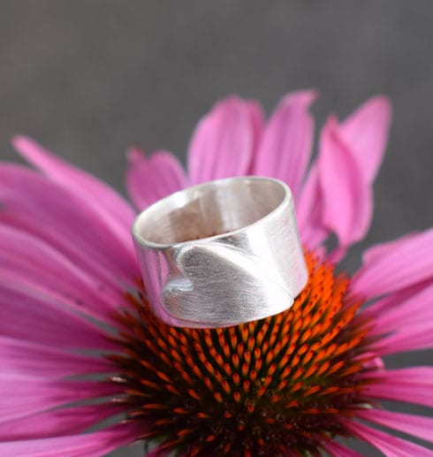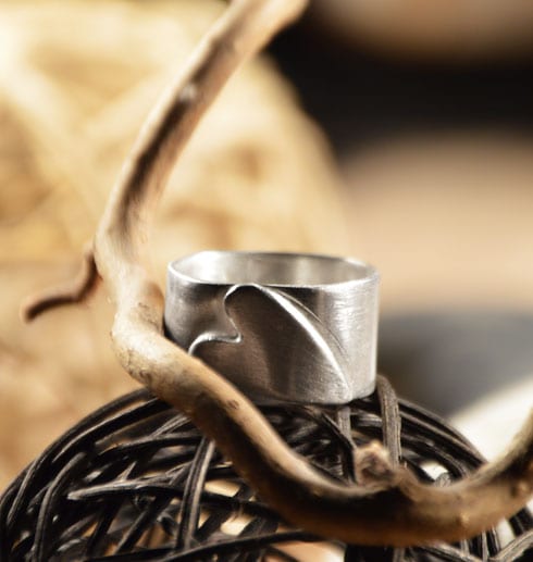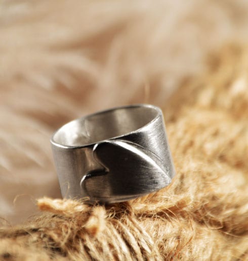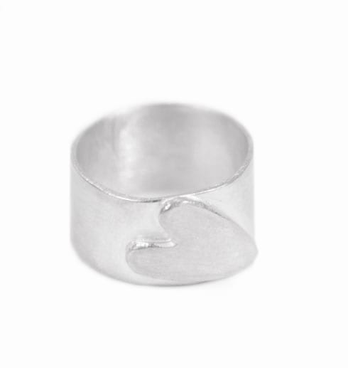 Handgjord, unik, bred silverring med ett hjärta som är fastlött lite snett. Stilren och fin! Eftersom detta är ett hantverk så får du ringen helt i din storlek. Skriv i meddelandefältet vilken storlek du önskar på ringen.