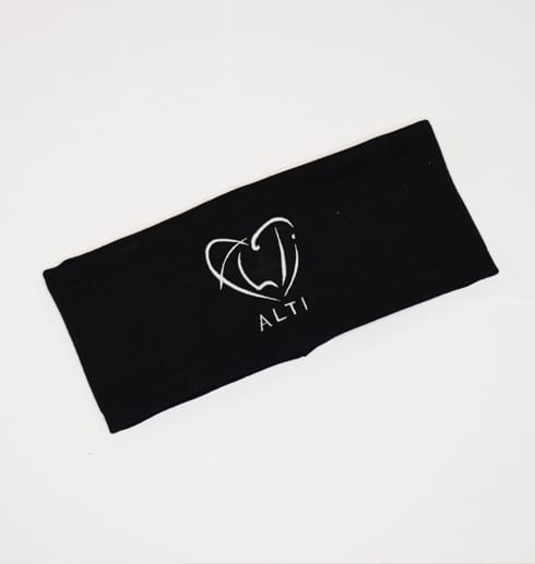 Härligt pannband med ALTIs logga broderad i silverfärgad tråd. Materialet i pannbandet är kraftig bomullspandex i hög kvalitet. Färgen är svart på pannbandet. Onesize.