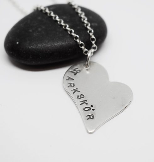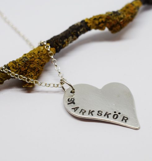 Vi på ALTI gillar fina och viktiga ord och tycker om att leka med olika ordkombinationer. Ordet STARKSKÖR och SKÖRSTARK betyder så mycket för oss och vi vill att man med stolthet ska kunna få vara både skör och stark på samma gång. Med smycket kan man visa andra att det är helt ok att vara detta! Halsbandet som är format som ett oregelbundet hjärta och är handgjort helt i 925 Sterlingsilver. Det hänger i en 45cm lång silverkedja som ingår i priset.