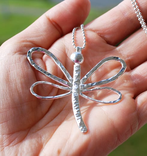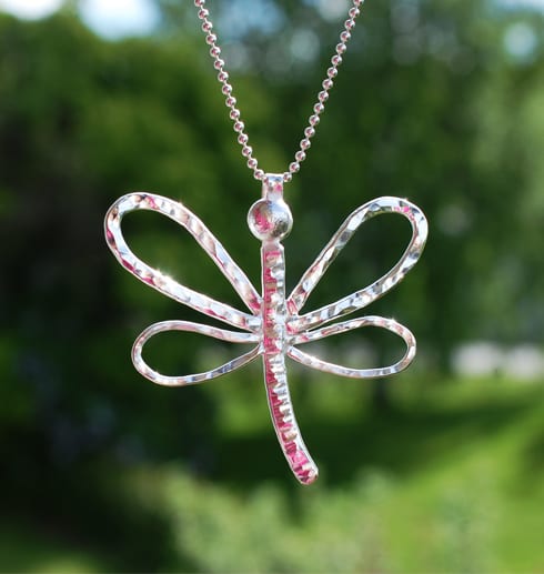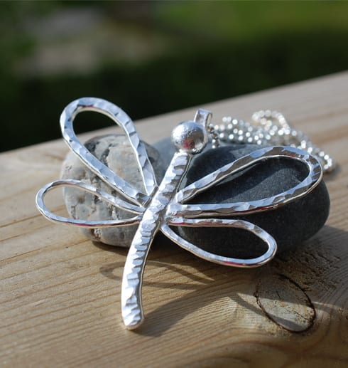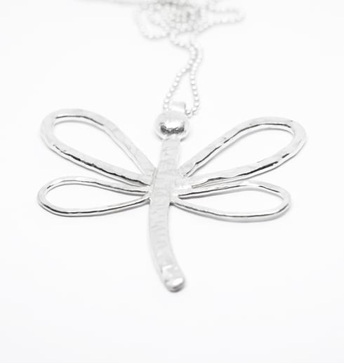 Unikt halsband. Stor handgjord trollslända helt i massivt 925 Sterlingsilver. Smycket hänger i en lång silverkedja. Maffig, unik och så himla läcker!