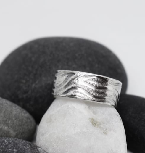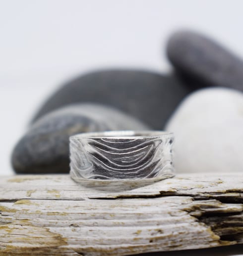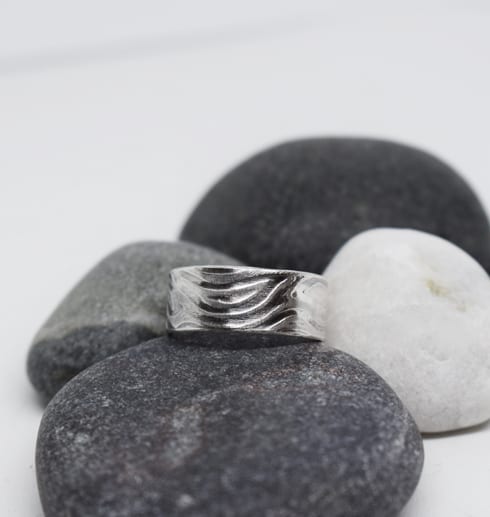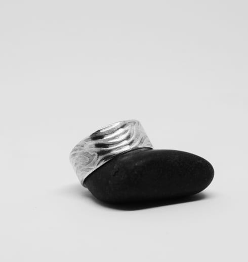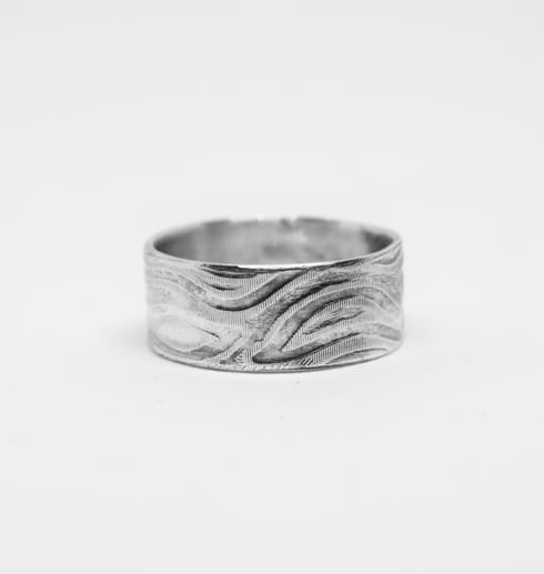 Handgjord silverring med valsat & oxiderat mönster i smyckeskollektionen ”Wave”. Passar både män och kvinnor. Kombinera gärna med fler smycken i samma smyckesserie.