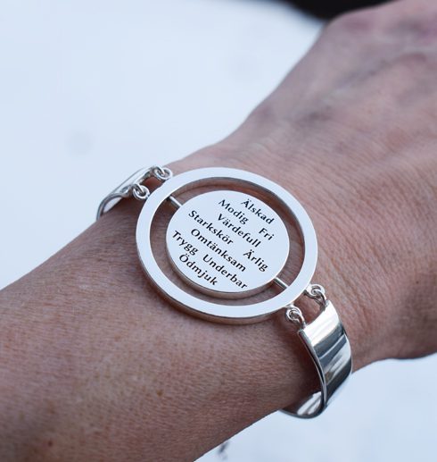Antingen bär du silverarmbandet med orden på framsidan synlig- då ger du även den du möter chansen att påverkas av dem.