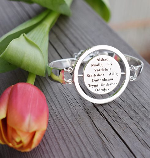 Ett sätt att använda det här armbandet kan vara att du väljer ut ”ordet för dagen” och jobbar på just det ordet du valt under dagen.